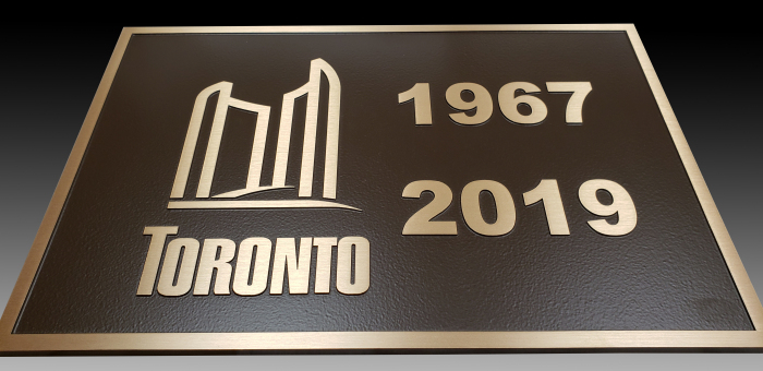 Plaques from Toronto Signs are custom made and available in a wide range of unique metal options to meet your specific requirements. Aluminum, stainless steel, brass, bronze, cast, painted, oxidized, etched, engraved, or raised lettering are examples of materials that can be used in a variety of forms and sizes. Our team can provide you with some suggestions based on the type of commemorative, historical, or heritage appearance you are looking for. Compact plaques made of thick gauge metals are also available for your consideration. Each of our custom designed plaque is made using high end quality products that are unmatched by competitors to provide the appropriate signage message. We took a different approach to creating personalized plaques that capture each client’s personality and distinguishes us from the competition.